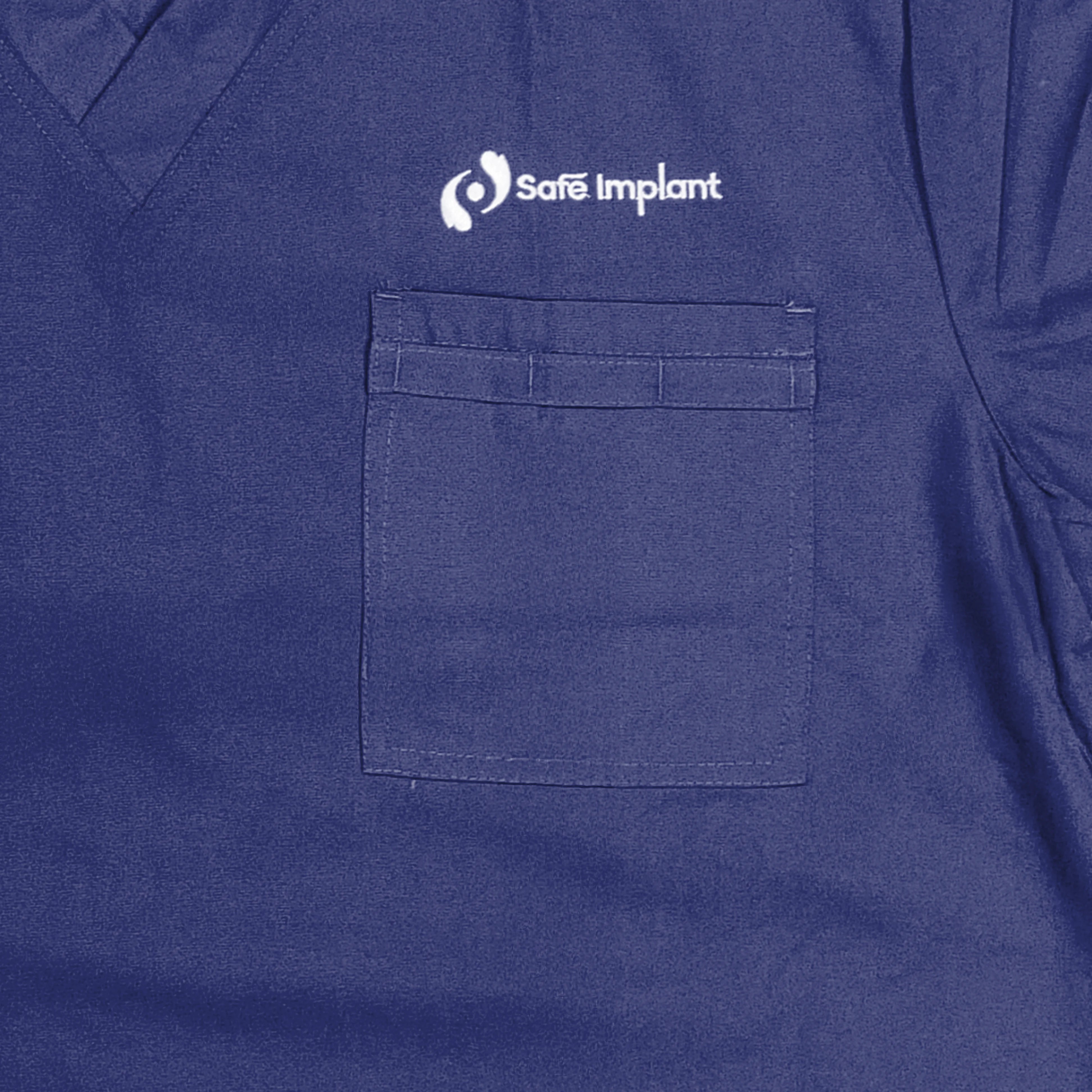 La blouse médicale Safe Implant combine confort, fonctionnalité et simplicité. Facile à enfiler comme un t-shirt grâce à sa forme droite et son col en V, elle s’adapte à toutes les morphologies, hommes comme femmes.