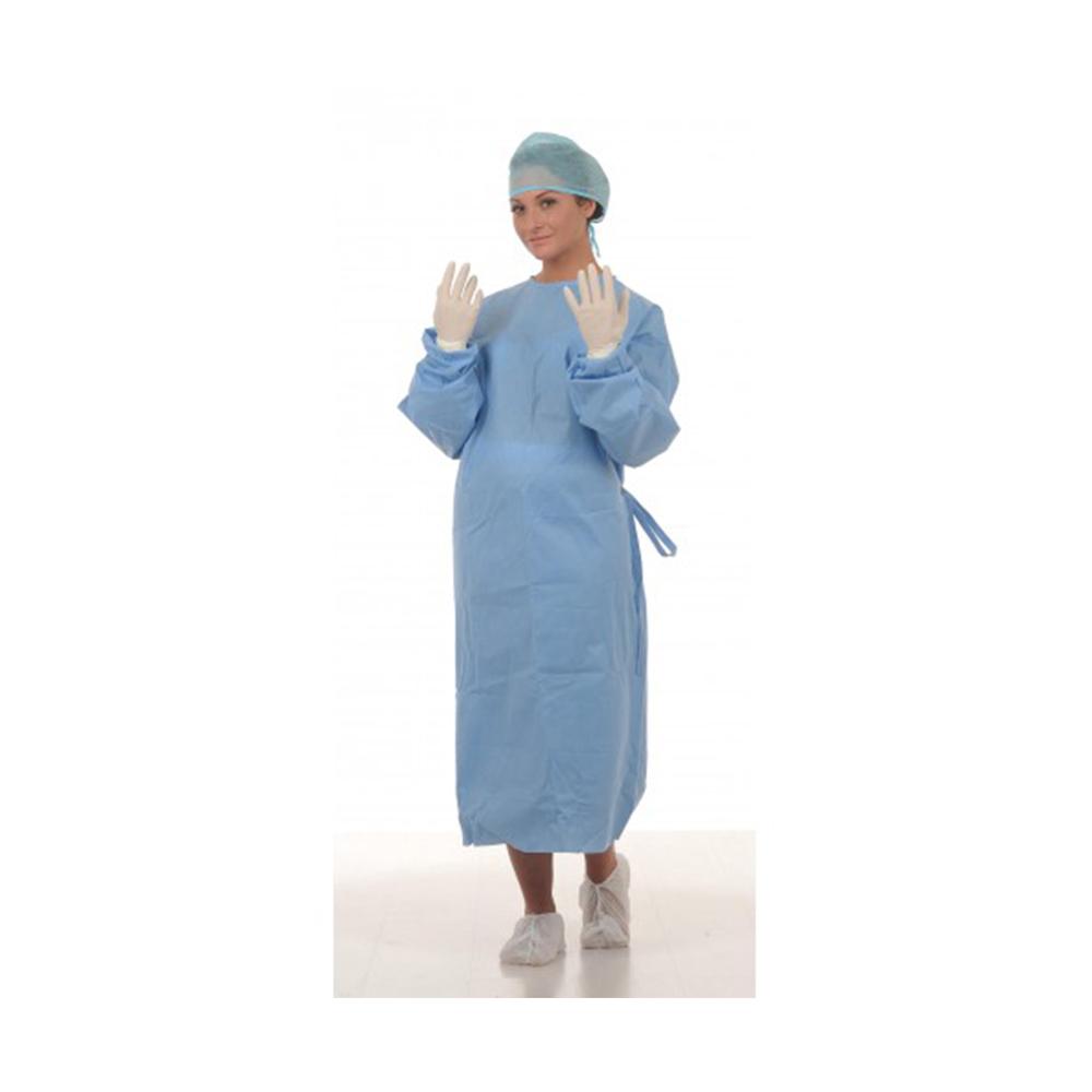 Casaque chirurgicale à usage unique, hydrophobe. La technologie d’assemblage par ultrason permet d’éviter les coutures à la machine, et offre une très grande protection au praticien, en augmentant la résistance au passage des germes et des liquides.