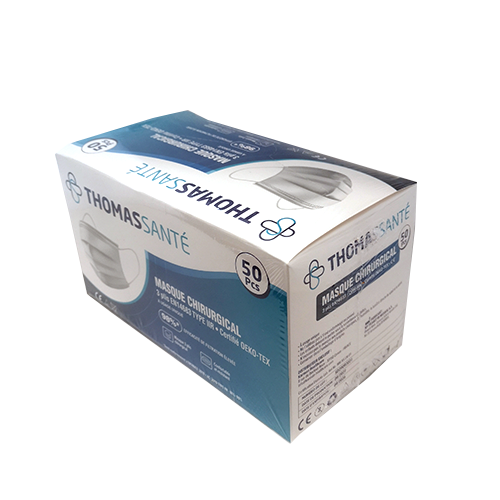 Masques chirurgicaux blancs 3 plis type IIR - ThomasSanté
