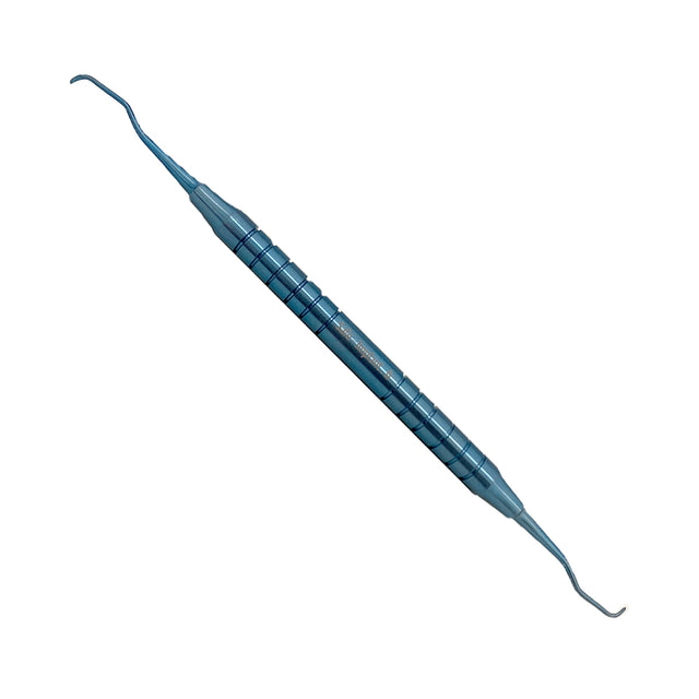 Curette de Gracey parodontale en titane, reconnue pour sa dureté et sa résistance aux chocs et à la corrosion à l'eau ou aux produits de désinfection. Stérilisable.