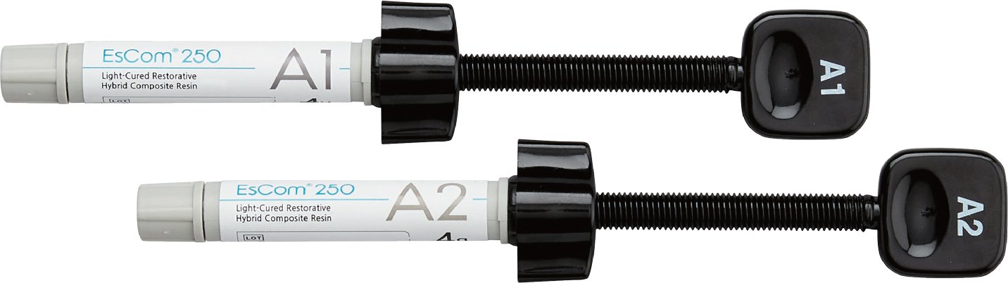 EsCom250 est une résine composite nano-hybride restauratrice photopolymérisable pour les restaurations postérieures et antérieures. Elle dispose d'un temps de travail de 90 secondes, ce qui laisse suffisamment de temps au dentiste pour la travailler. EsCom250 présente une résistance à la compression élevée et une excellente durabilité.