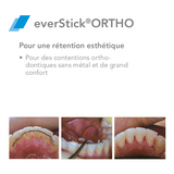 EverStick® de GC sont des fibres de verre silanées incorporées dans un gel de résines Bis-GMA et PMMA. Au contact des résines dentaires la gaine externe du renfort se dissout partiellement, laissant ainsi pénétrer le composite.