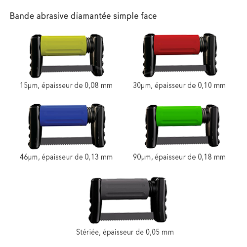 Le coffret contient : 2 manches + 2 bandes FitStrip striées + 4 bandes FitStrip abrasives diamantées simple face (1 de chaque taille de grain) + 4 bandes FitStrip abrasives diamantées double face (1 de chaque taille de grain).