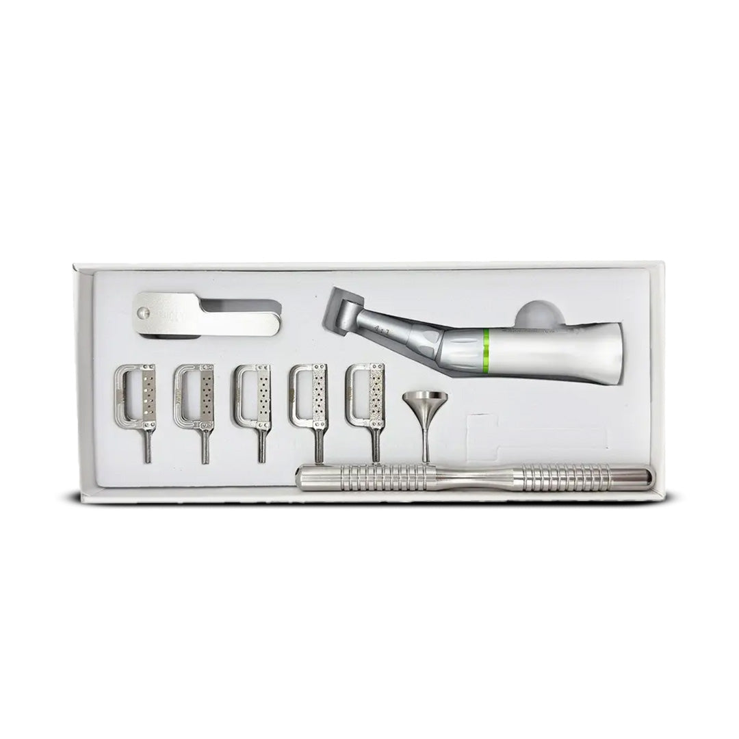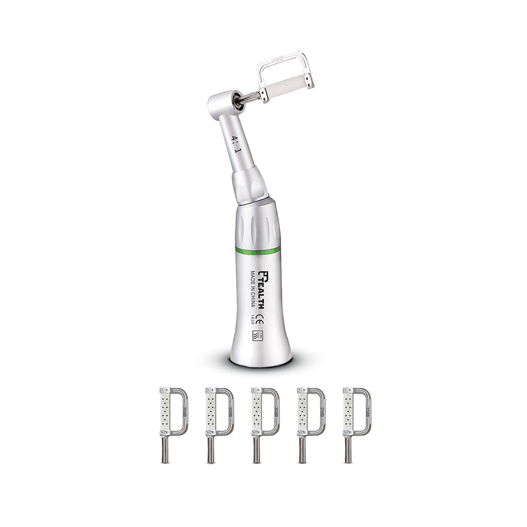 Le kit contre-angle TEALTH 4:1 IPR S-11 est un système complet et prêt à l’emploi destiné à la réduction interproximale (IPR) en orthodontie. Il comprend un contre-angle TEALTH 4:1 à mouvement alternatif, spécialement conçu pour l’utilisation de bandes métalliques IPR, offrant une efficacité élevée et une excellente précision clinique.