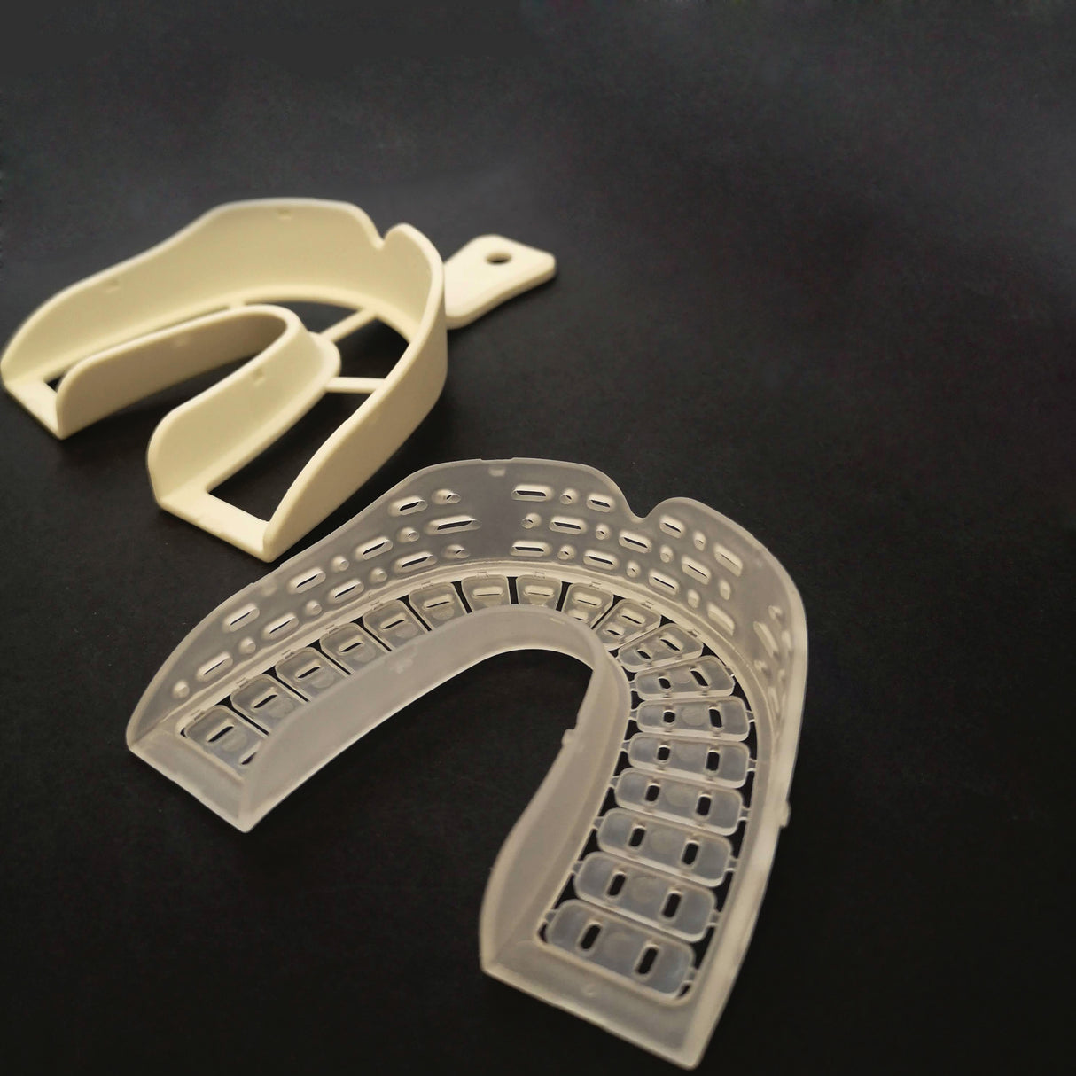 Type 2: les porte-empreintes internes ont une arche recouverte d'un film transparent facilement pénétrable. Le porte-empreinte interne est disposé dans l'externe, puis le matériau d'impression est disposé au fond. Appuyez lentement et de manière continue pour que le pilier perce le film pour une empreinte propre et précise.